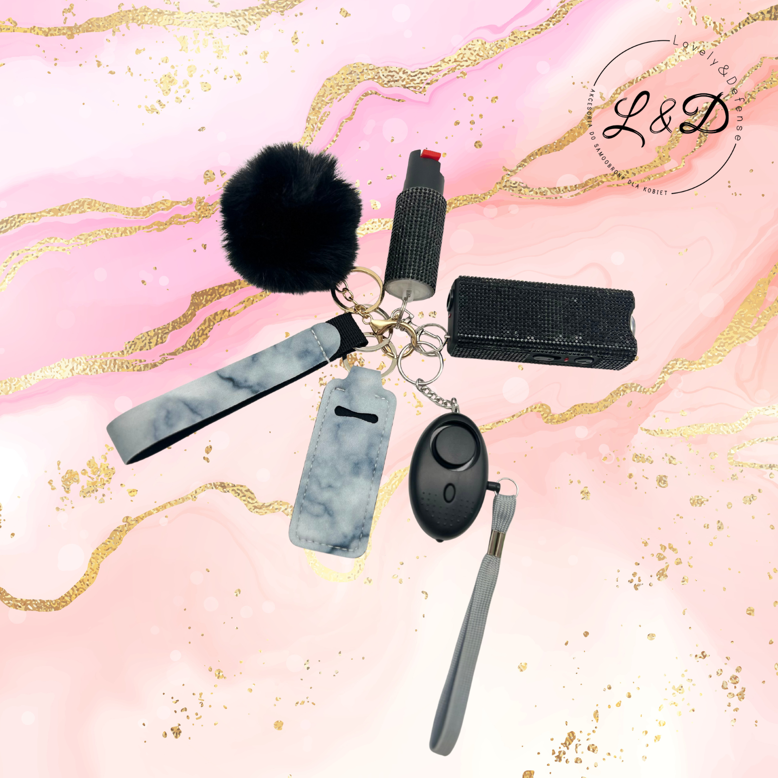 Kompletny zestaw ochrony osobistej Bezpieczna Ona™ zawierający paralizator, gaz pieprzowy i alarm osobisty. Dyskretny, kompaktowy i prosty w obsłudze – stworzony, aby dać Ci poczucie bezpieczeństwa i kontroli w każdej sytuacji.